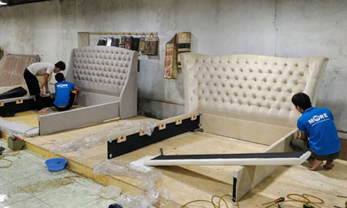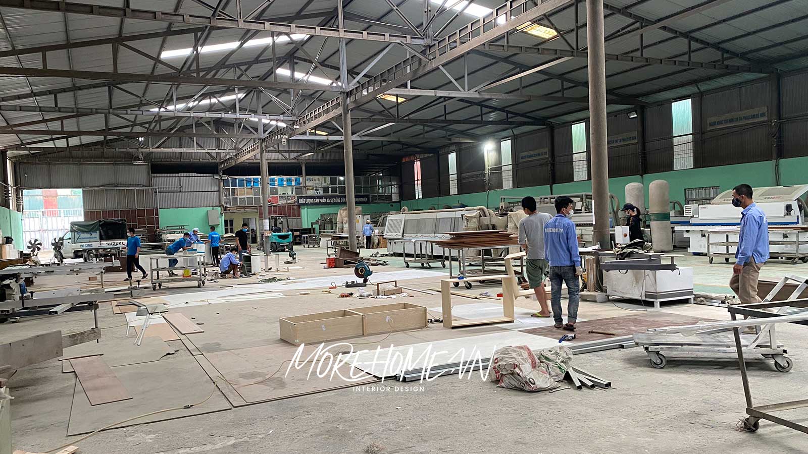 Xưởng sản xuất gỗ công nghiệp Morehome ngoài quy mô rộng lớn, còn được đầu tư toàn bộ công nghệ hiện đại, các bộ phận sản xuất chuyên hóa cao. Nhờ vậy, xưởng luôn đáp ứng được khối lượng sản xuất sản phẩm lớn, thời gian hoàn thiện nhanh chóng và chất lượng được tối ưu hóa. Sản phẩm chuyên cung cấp: giường gỗ công nghiệp, kệ tủ TV, tủ quần áo, sofa gỗ, bàn ghế gỗ,...