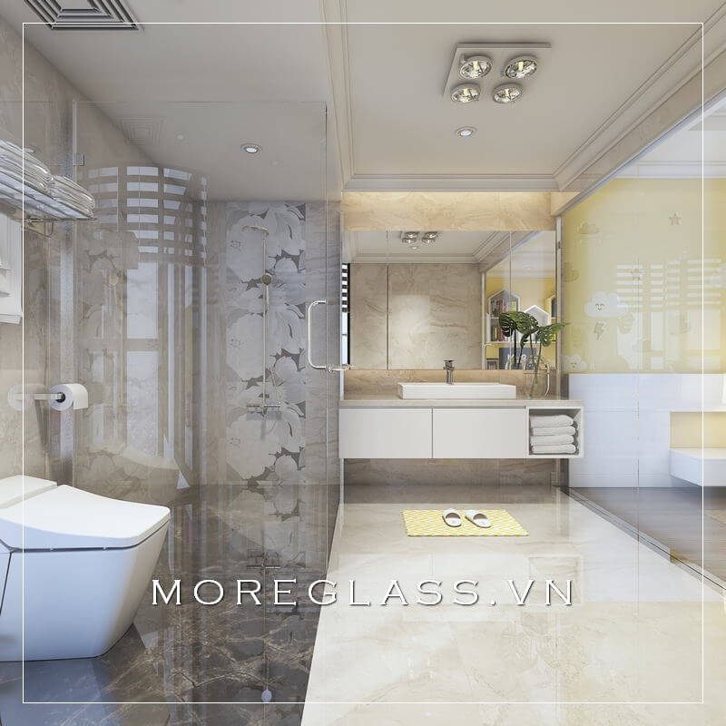 Mẫu thiết kế phòng tắm trắng trong suốt góp phần tạo nên vẻ đẹp hiện đại, cùng với cảm giác thông thoáng khiến căn phòng trở nên cá tính hơn.