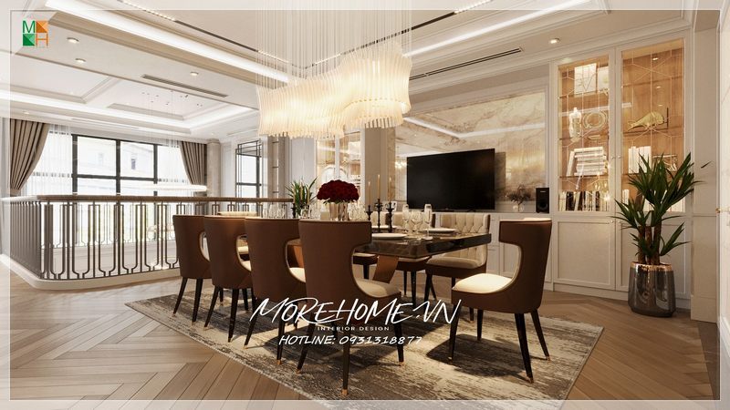 Hợp tác hoàn hảo giữa ý tưởng thiết kế và các món đồ nội thất đã tạo nên một không gian phòng ăn tuyệt đẹp. Khi nhìn vào, bất cứ ai cũng sẽ bị thu hút và ấn tượng sâu sắc bởi căn phòng đó.