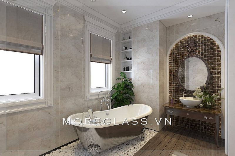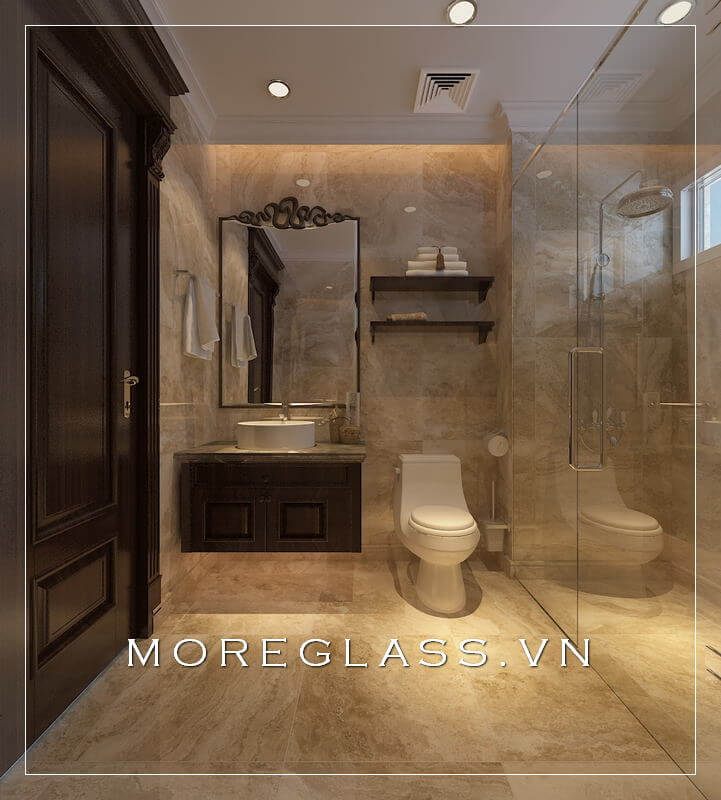 Không gian này cũng có thể được tối ưu hóa thông qua việc sử dụng kính cường lực trong thiết kế. Cửa kính hoặc vách ngăn trong suốt có thể là lựa chọn hoàn hảo để tăng tính thoải mái và ánh sáng tự nhiên cho phòng tắm của bạn. Hãy tỉ mỉ trong việc bày trí từ các vật liệu xây dựng cho đến các khoản đầu tư nhỏ để biến không gian này thành điểm nhấn độc đáo và sang trọng.