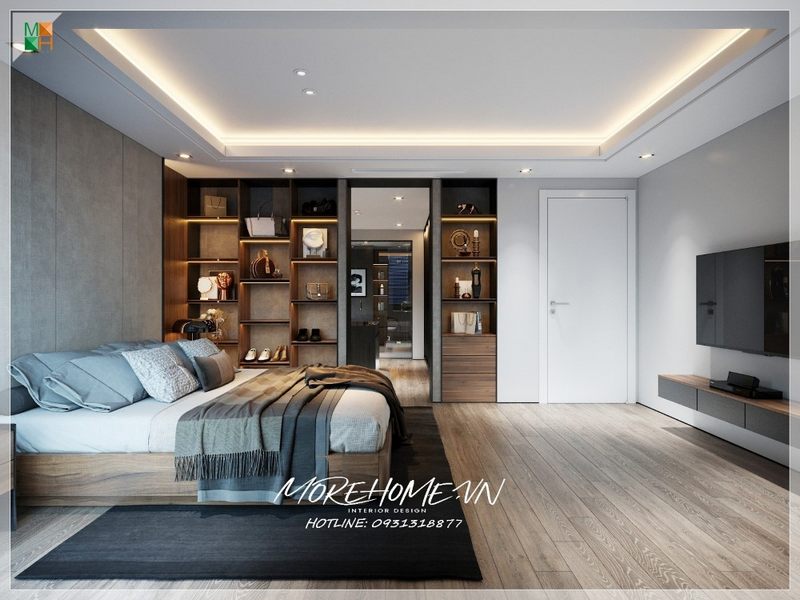 Những gia chủ hiện nay thường ưu tiên thiết kế phòng ngủ theo phong cách hiện đại với việc bố trí nội thất tiện lợi và hệ thống kệ tủ tinh tế trong không gian biệt thự.