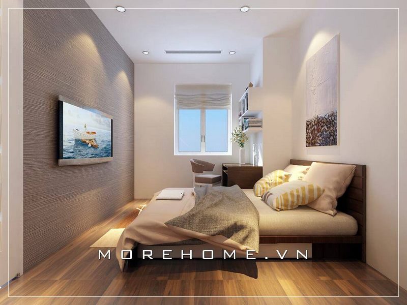 Giường ngủ có lối thiết kế đơn giản, nhẹ nhàng và phù hợp với không gian phòng ngủ nhỏ của nhà phố hiện đại.